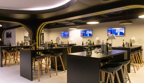 • Exklusiver Hospitality-Bereich mit fest reservierten Tischen